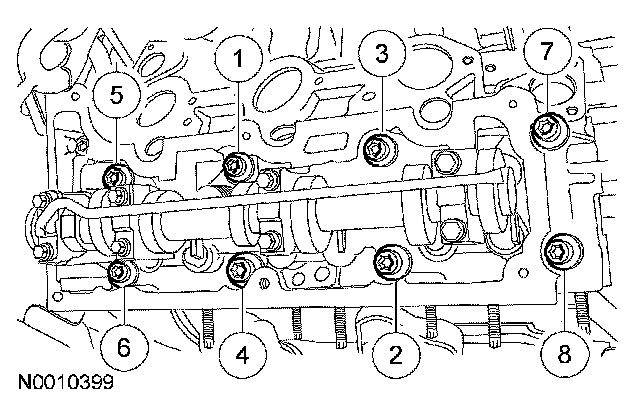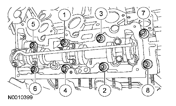 Position the RH cylinder head. Install 8 new M12 bolts and tighten in the sequence shown in 2 stages.