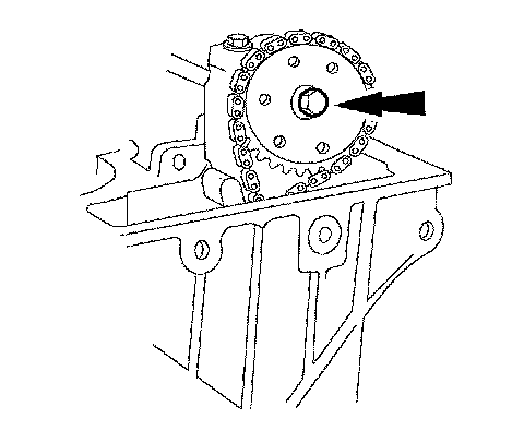 Remove the rubber band, position the camshaft sprocket and chain. Loosely install the bolt.