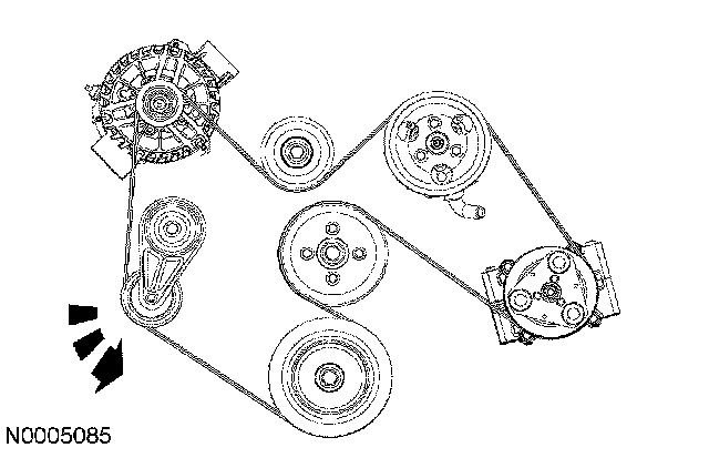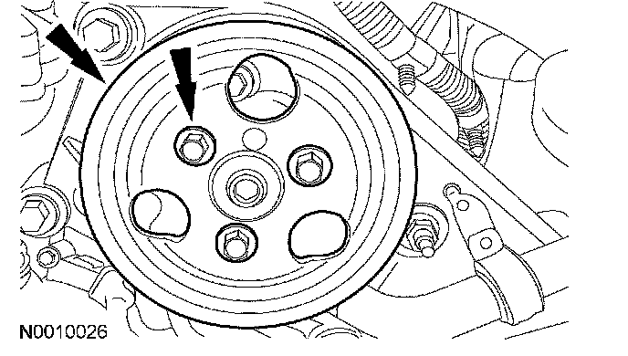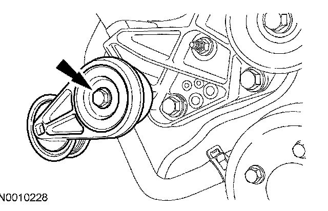 45. Rotate the accessory drive belt tensioner counterclockwise and install the accessory drive belt.