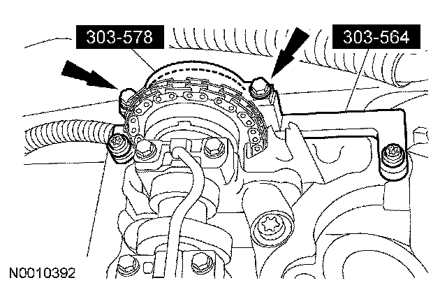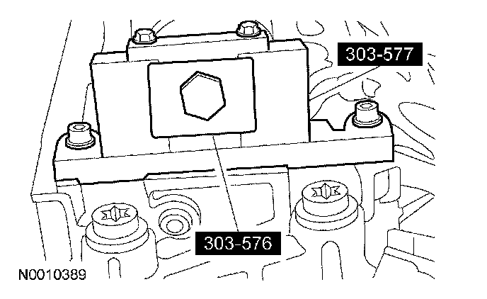 NOTE: The special tool must be installed on the damper and should contact the engine block, this positions the engine at TDC.