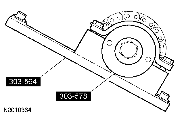 Position the camshaft timing slots below the centerline of the camshaft to correctly fit the special tools, and install the special tools on the rear of the LH cylinder head.