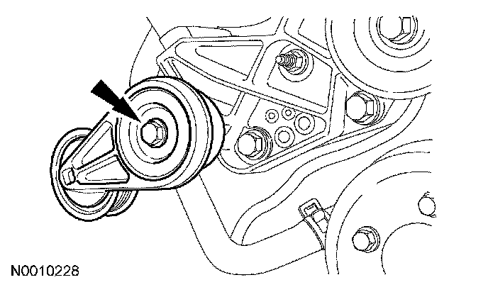 7. Remove the bolt and the accessory drive belt tensioner.