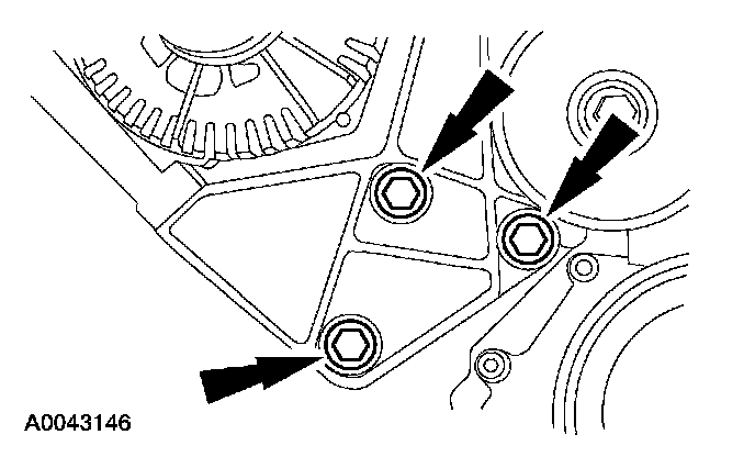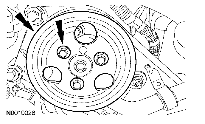 17. Remove the 3 bolts and the power steering pump pulley.