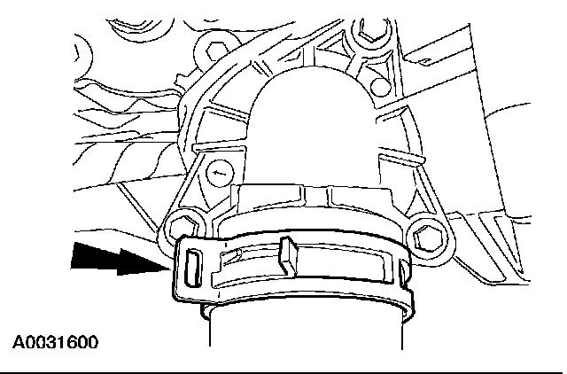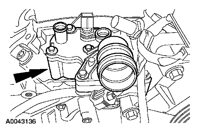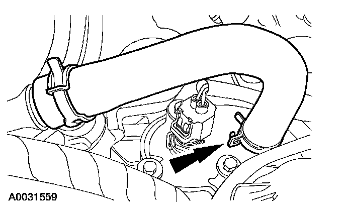 9. Disconnect the heater hose from the thermostat housing.