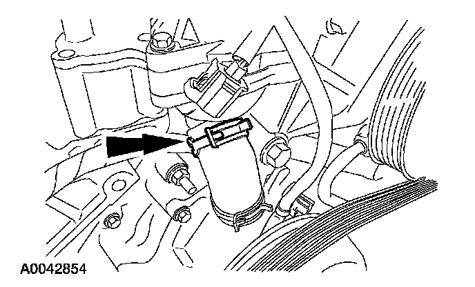 5. Rotate the accessory drive belt tensioner counterclockwise and remove the accessory drive belt.