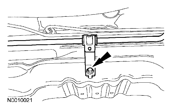 16. Remove the bolt and detach the Power Steering Pressure (PSP) tube bracket from the crossmember.
