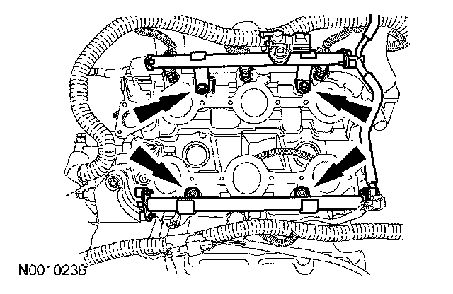 25. Separate the 6 fuel injectors from the fuel rail and discard the O-ring seals.