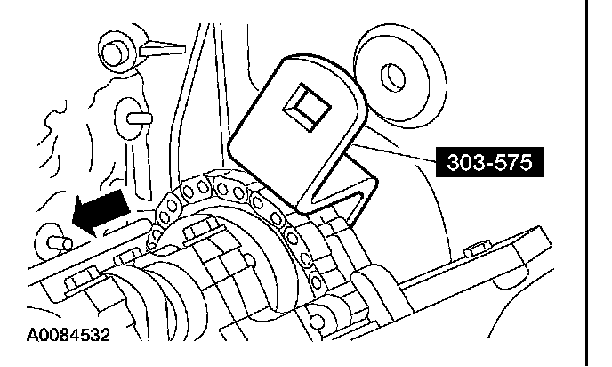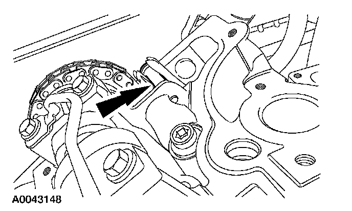 Remove the LH camshaft sprocket from the timing chain. Install a rubber band around the cassette and the timing chain.