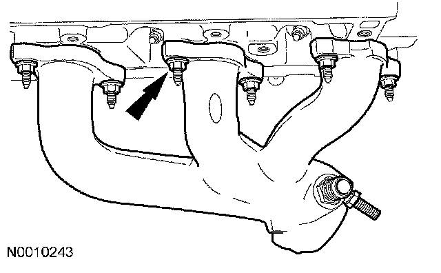 102. Position a new LH exhaust manifold gasket and the LH exhaust manifold. Install the 6 nuts.