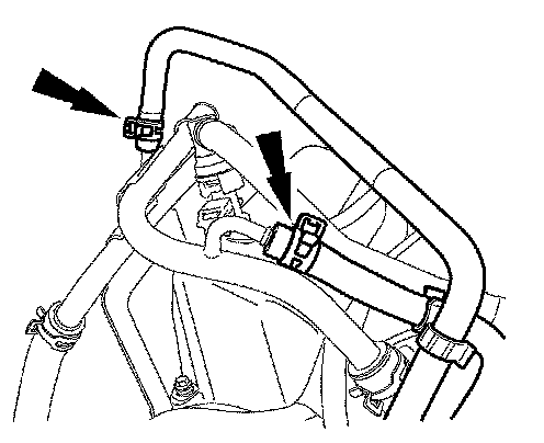 6. Disconnect the vacuum tube and the fuel rail pressure and temperature sensor electrical connector.