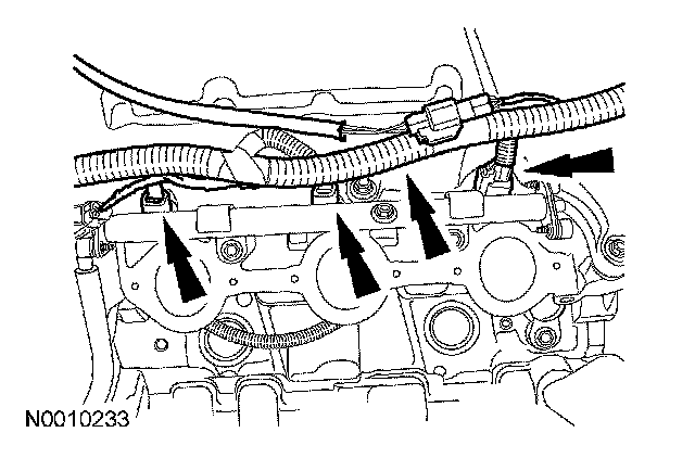 CAUTION: If the fuel rail is used as a leverage device, damage may occur to the fuel rail. Care must be taken when working around the fuel rail.