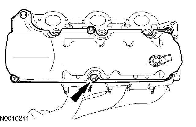 44. Install the special tools on the LH cylinder head and tighten the top 2 clamp bolts to 10 Nm (89 inch lbs.).