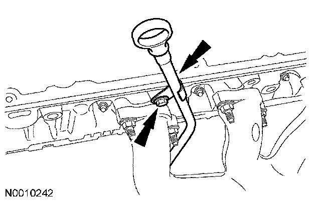 CAUTION: During engine repair procedures, cleanliness is extremely important. Any foreign material, including any material created while cleaning gasket surfaces that enters the oil passages, coolant passages or the oil pan, can cause engine failure.