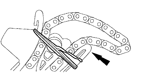Remove the RH camshaft sprocket from the timing chain. Install a rubber band around the cassette and the timing chain.
