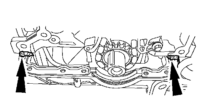 9. Remove the 5 engine block cradle to engine front cover bolts.