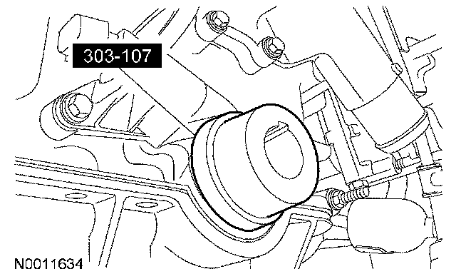 12. CAUTION: Make sure that any coolant that drains into the front corners of the engine block cradle is removed.