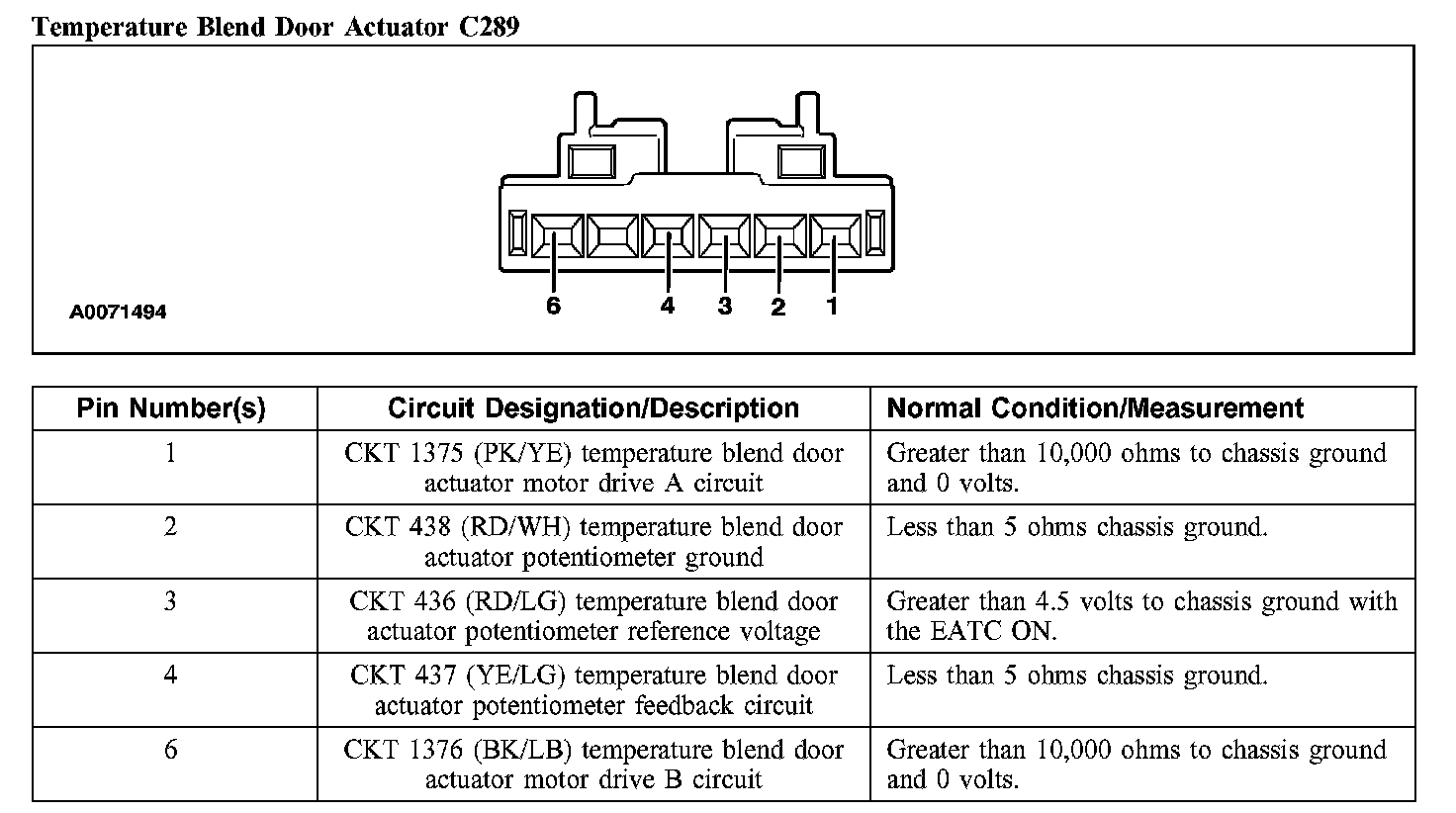 Temperature Blend Door Actuator C289: