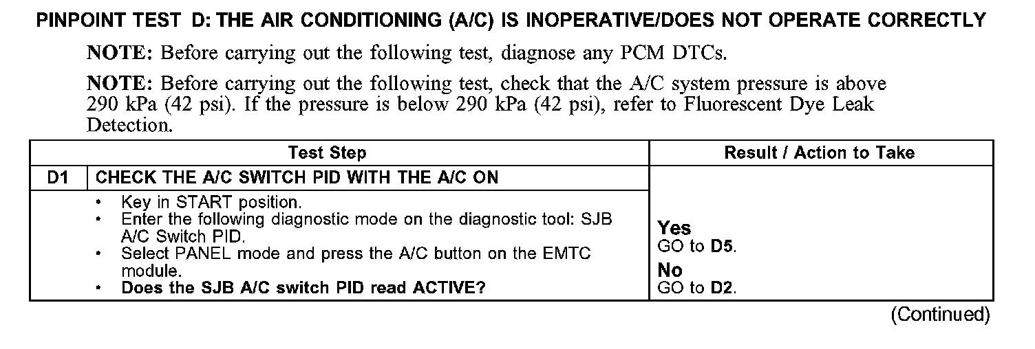 PINPOINT TEST D: THE AIR CONDITIONING (A/C) IS INOPERATIVE/DOES NOT OPERATE CORRECTLYD1: