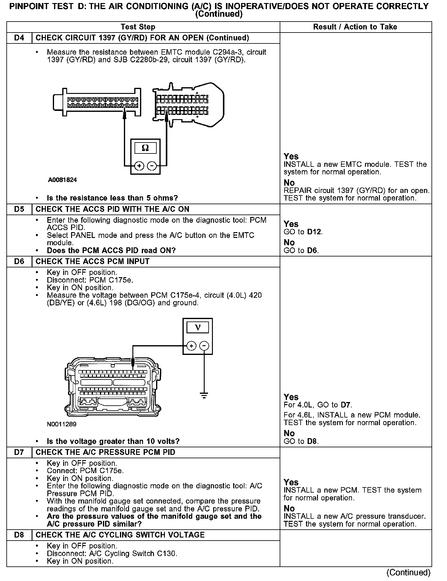 Test D: The Air Conditioning (A/C) Is Inoperative/Does Not Operate Correctly