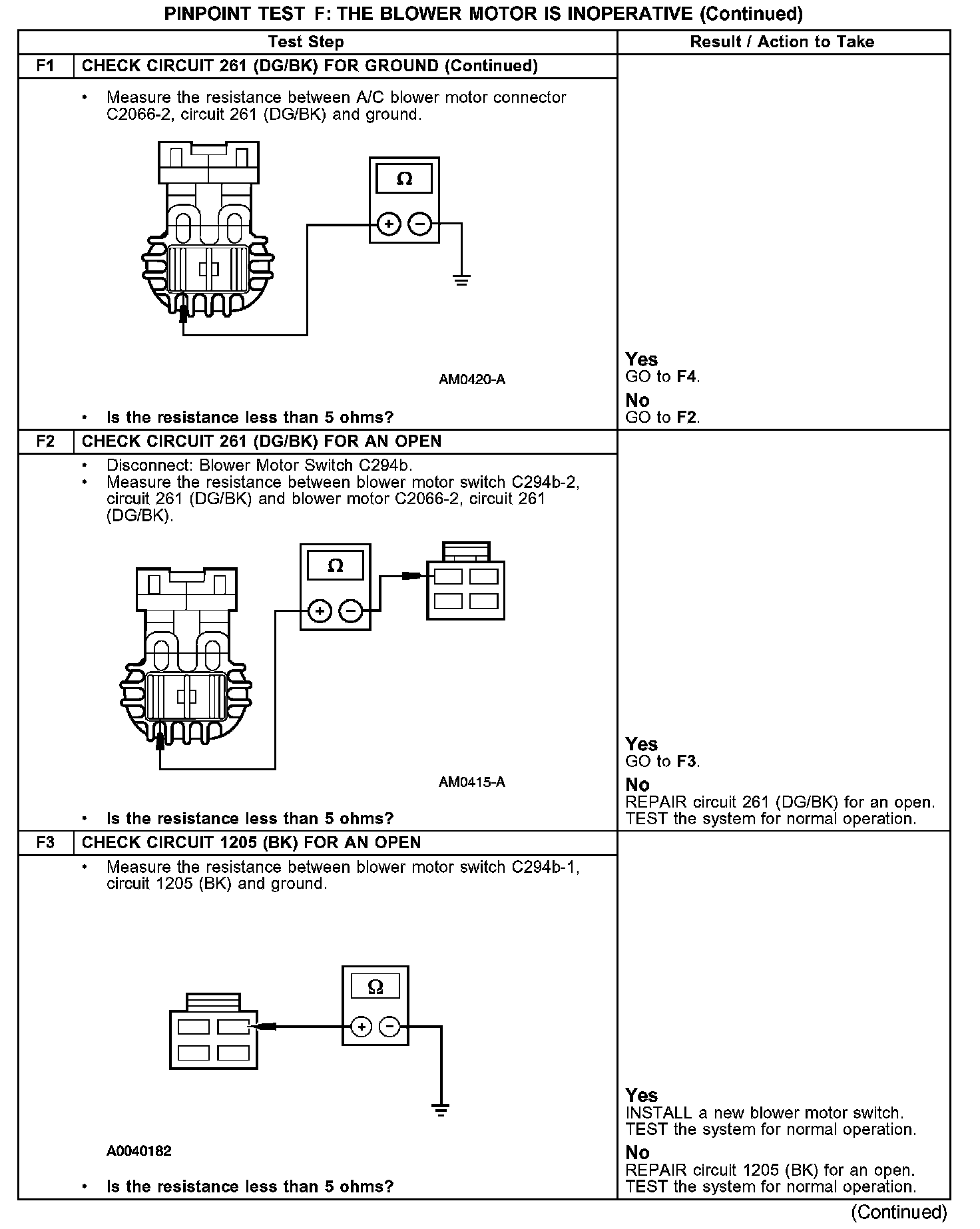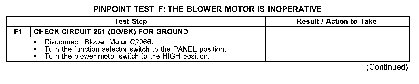 PINPOINT TEST F: THE BLOWER MOTOR IS INOPERATIVEF1: