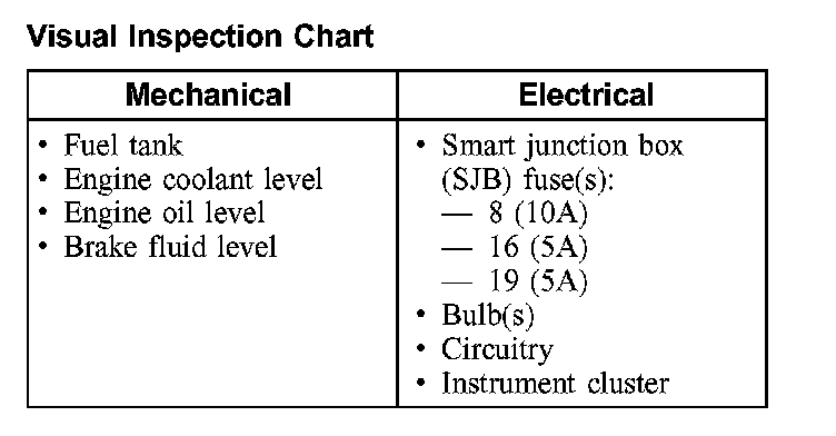 7. If the DTCs retrieved are related to the concern, go to the Instrument Cluster Diagnostic Trouble Code (DTC) Index, the Smart Junction Box (SJB) Diagnostic Trouble Code (DTC) Index, or the Powertrain Control Module (PCM) Diagnostic Trouble Code (DTC) Index. Instrument Cluster Diagnostic Trouble Code (DTC) Index Smart Junction Box (SJB) Diagnostic Trouble Code (DTC) Index Powertrain Control Module (PCM) DTC Index