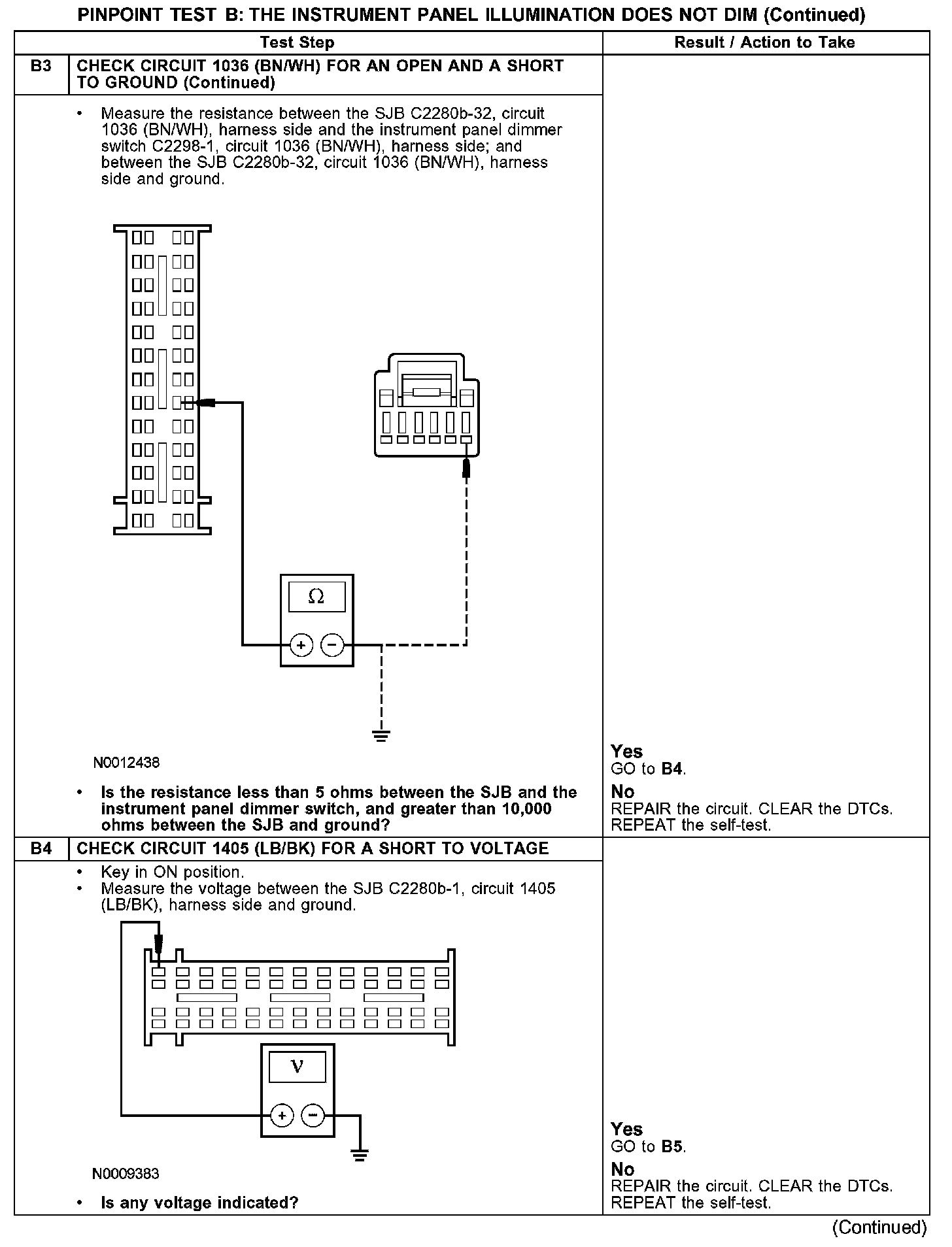 PINPOINT TEST B: THE INSTRUMENT PANEL ILLUMINATION DOES NOT DIMB1-B3:
