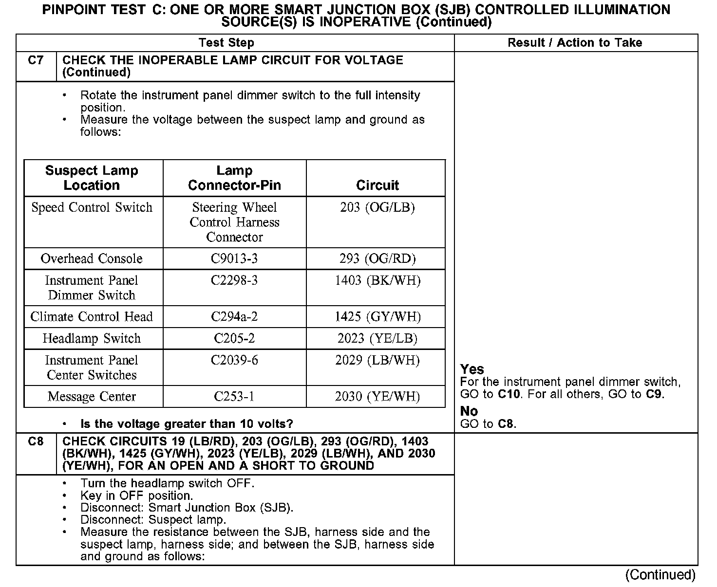 Test C: One Or More Smart Junction Box (SJB) Controlled Illumination Source(s) Is Inoperative