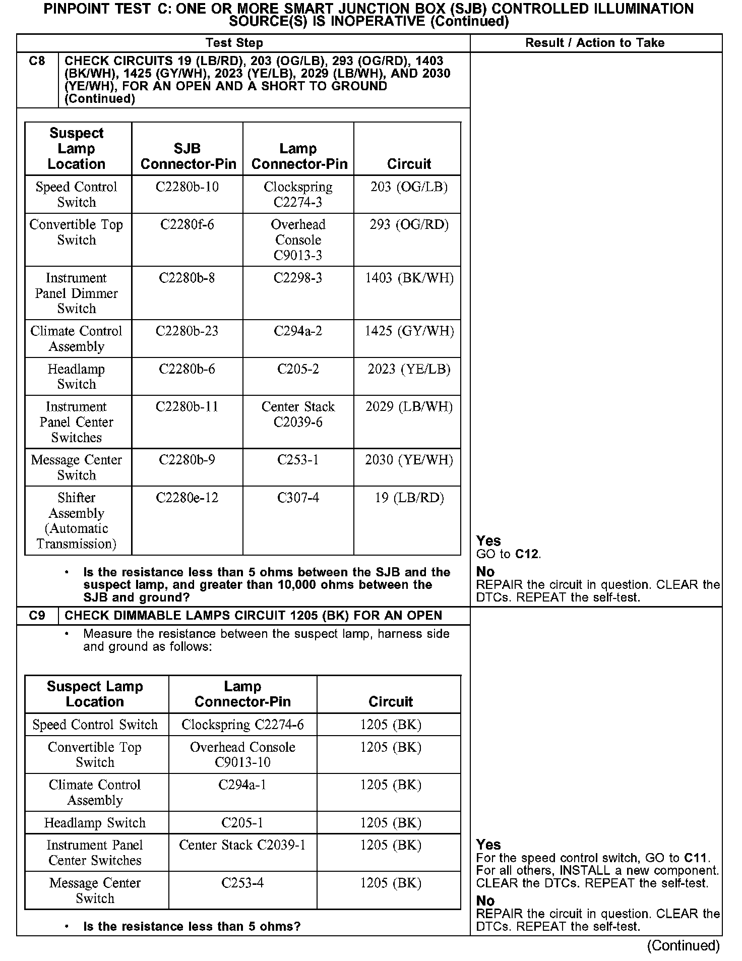 PINPOINT TEST C: ONE OR MORE SMART JUNCTION BOX (SJB) CONTROLLED ILLUMINATION SOURCE(S) IS INOPERATIVEC1-C4: