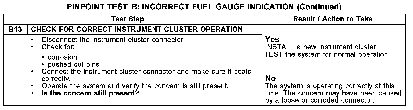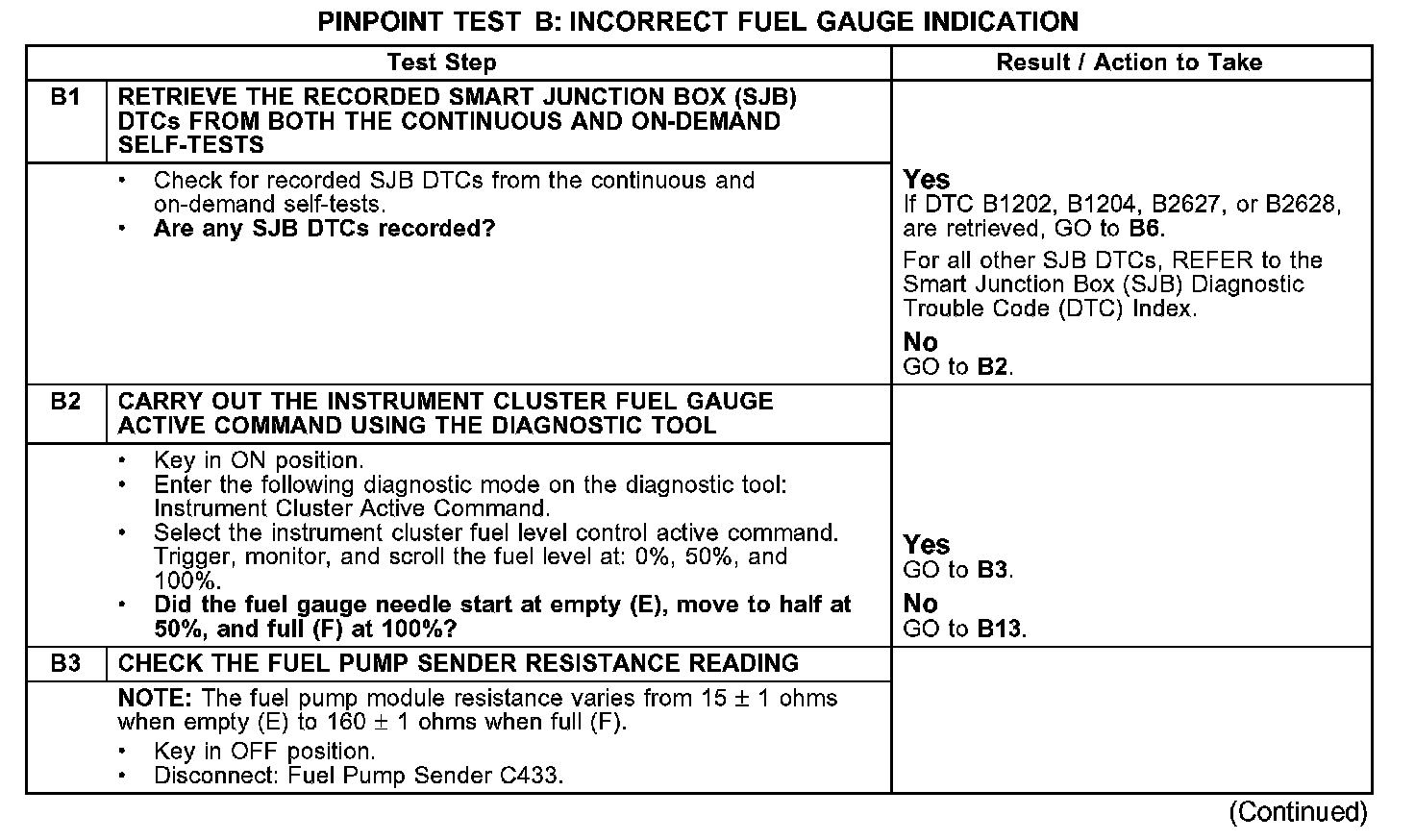 PINPOINT TEST B: INCORRECT FUEL GAUGE INDICATIONB1-B3: