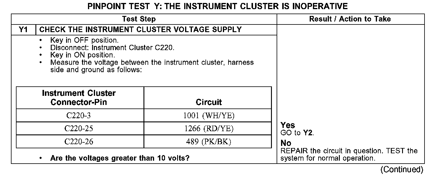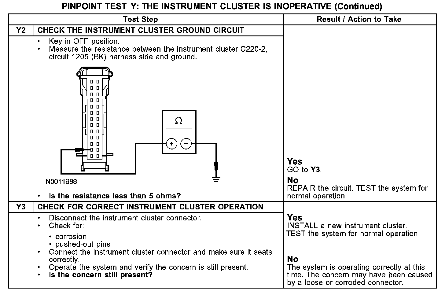 PINPOINT TEST Y: THE INSTRUMENT CLUSTER IS INOPERATIVEY1:
