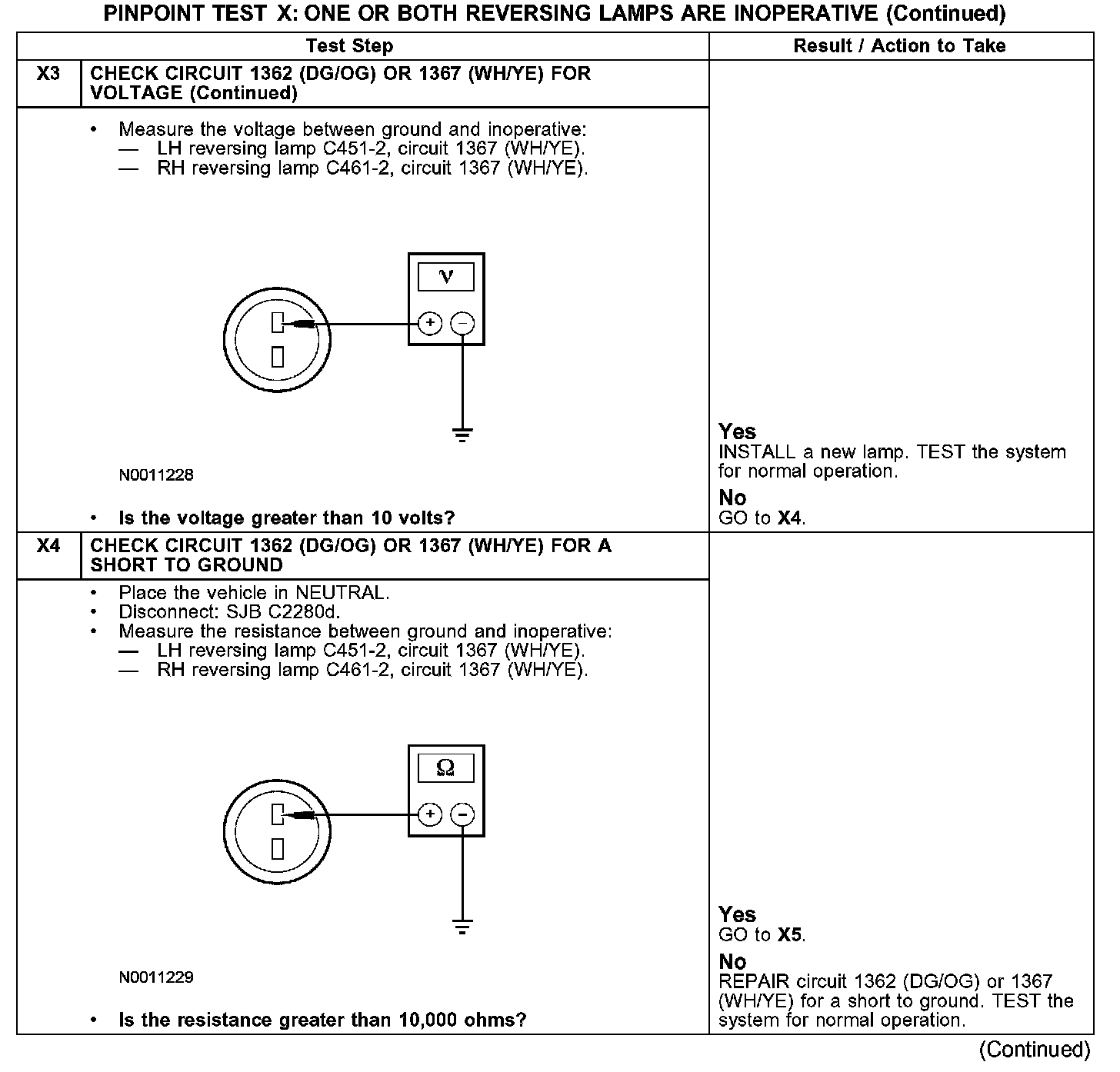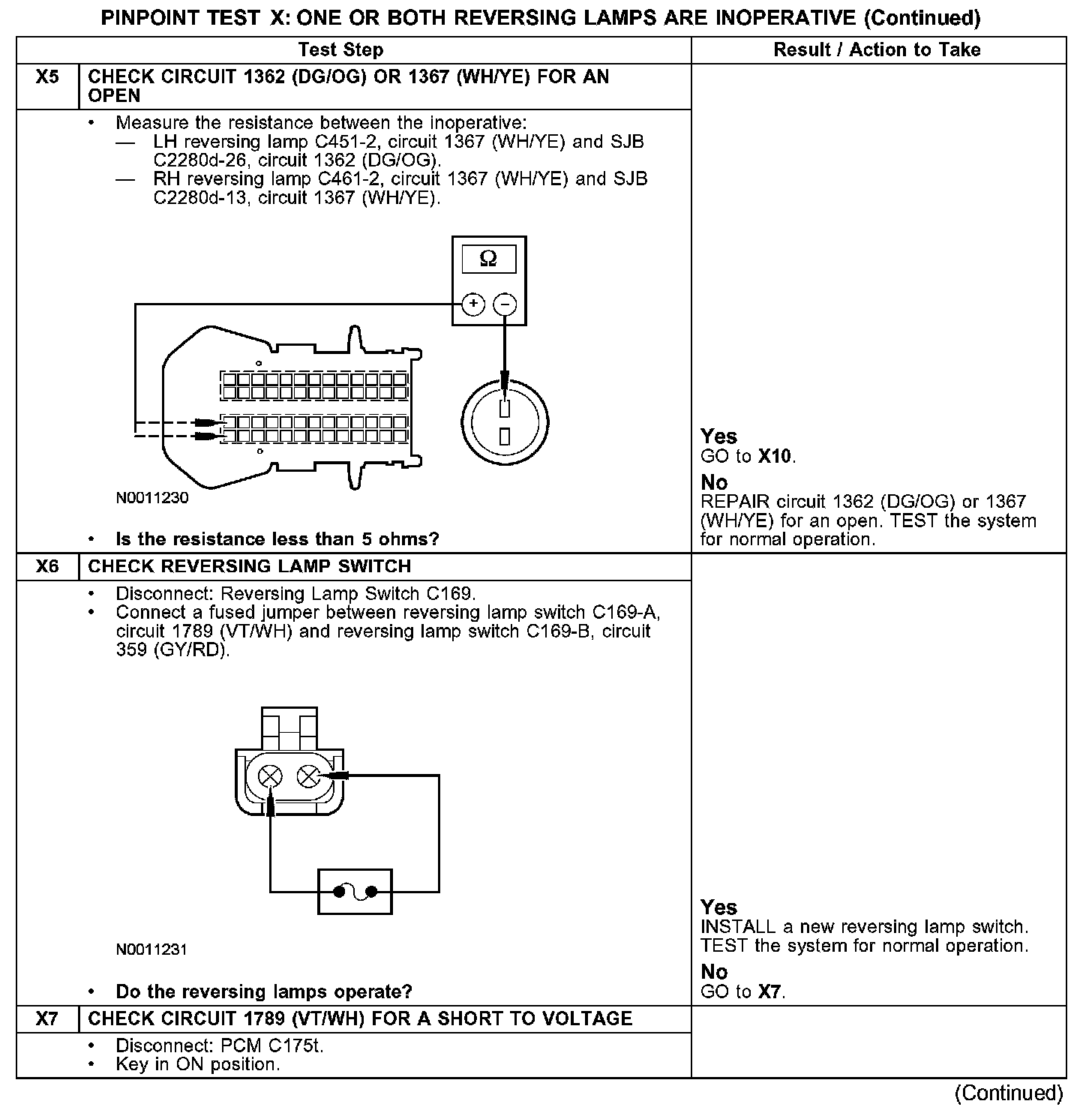 PINPOINT TEST X: ONE OR BOTH REVERSING LAMPS ARE INOPERATIVEX1-X3: