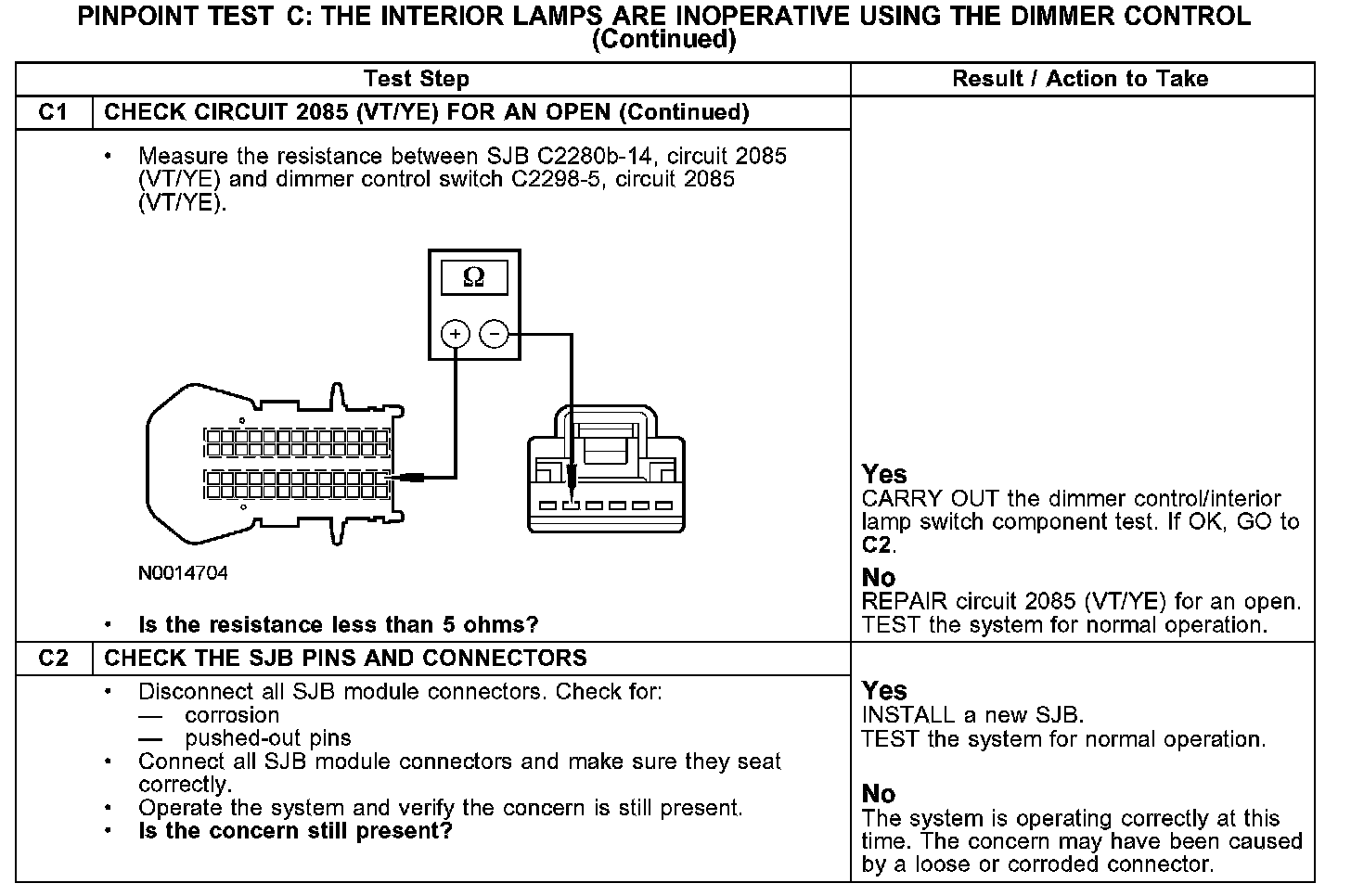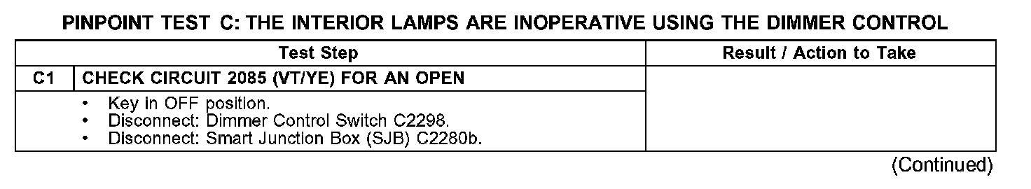 PINPOINT TEST C: THE INTERIOR LAMPS ARE INOPERATIVE USING THE DIMMER CONTROLC1: