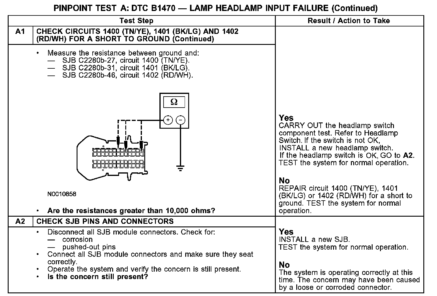 Test A: DTC B1470 - Lamp Headlamp Input Circuit Failure