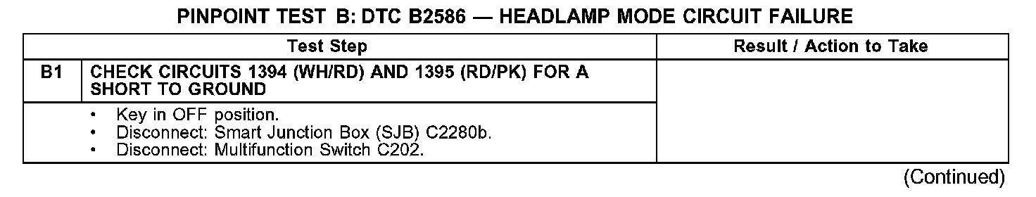 PINPOINT TEST B: DTC B2586 - HEADLAMP MODE CIRCUIT FAILUREB1: