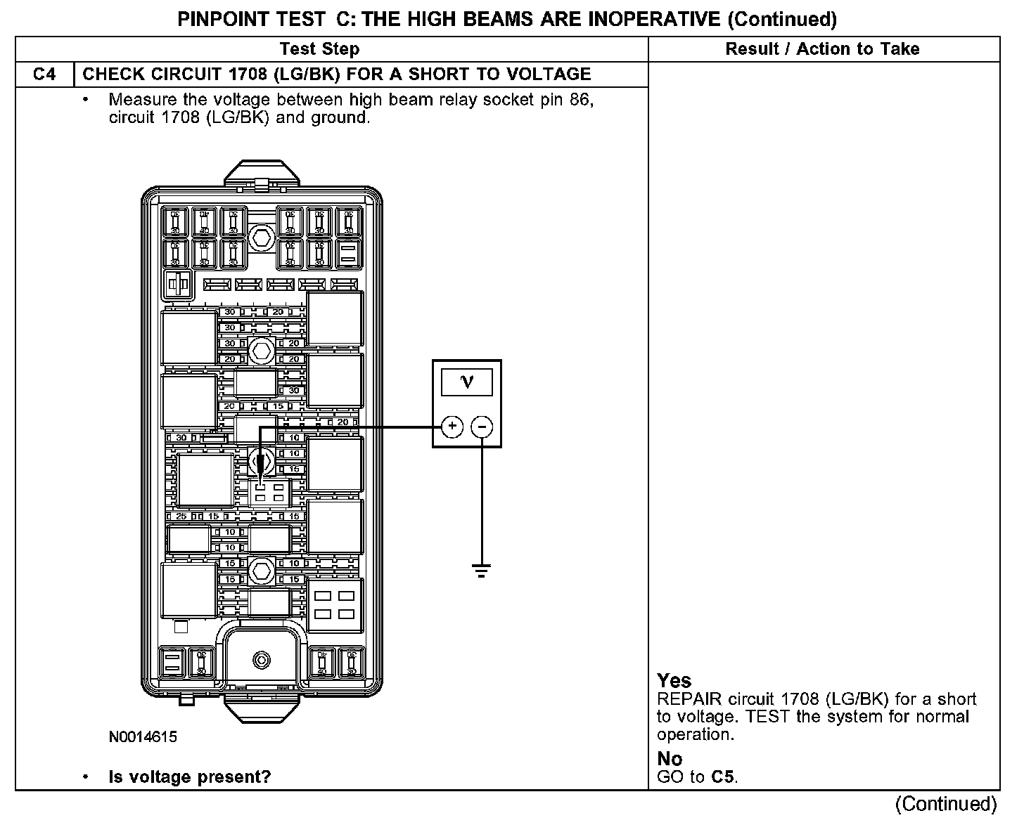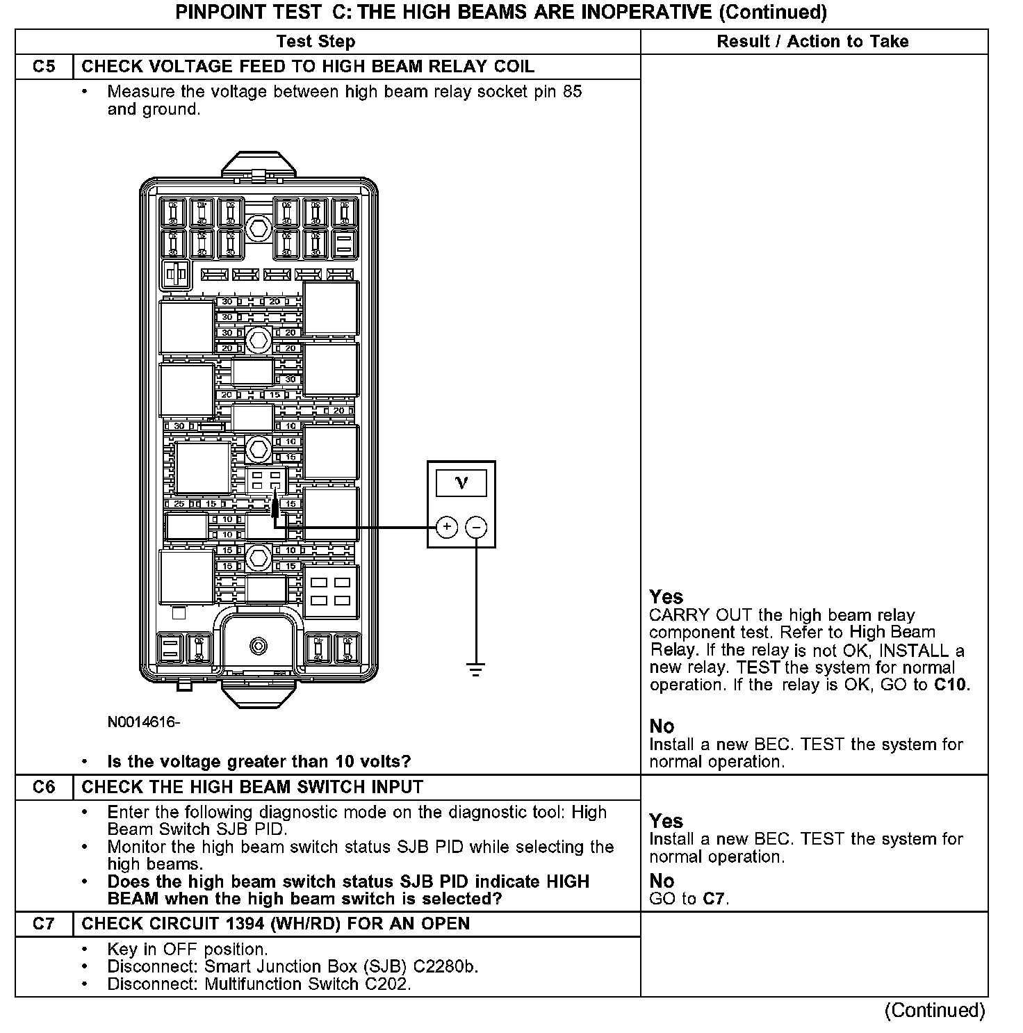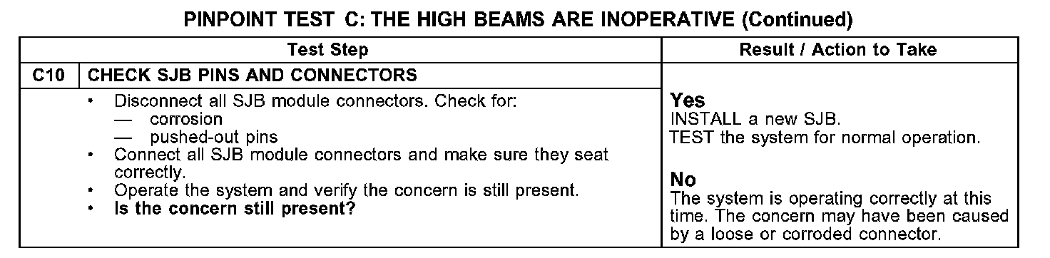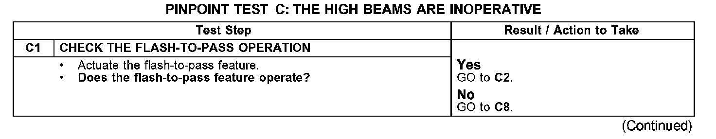 PINPOINT TEST C: THE HIGH BEAMS ARE INOPERATIVEC1: