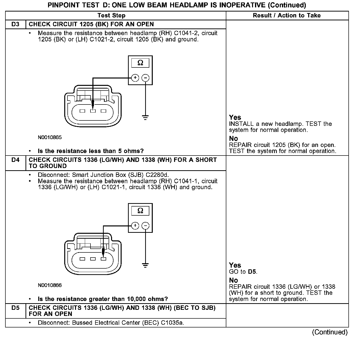 PINPOINT TEST D: ONE LOW BEAM HEADLAMP IS INOPERATIVED1-D2:
