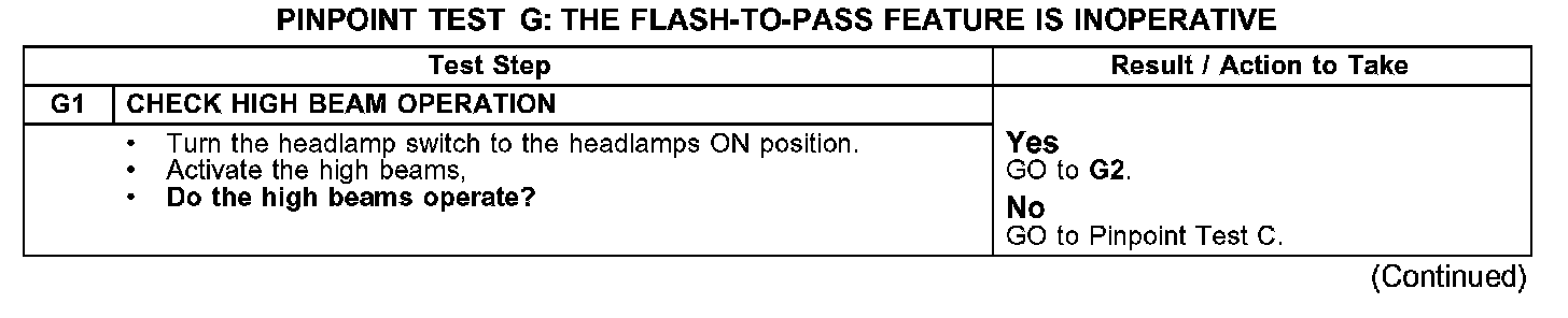PINPOINT TEST G: THE FLASH-TO-PASS FEATURE IS INOPERATIVEG1: