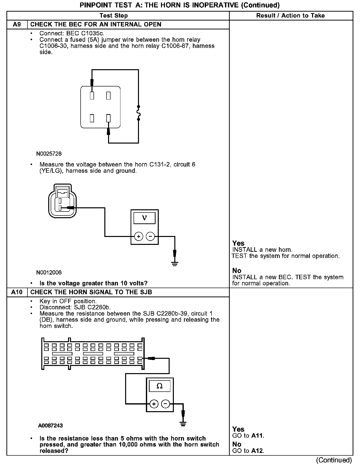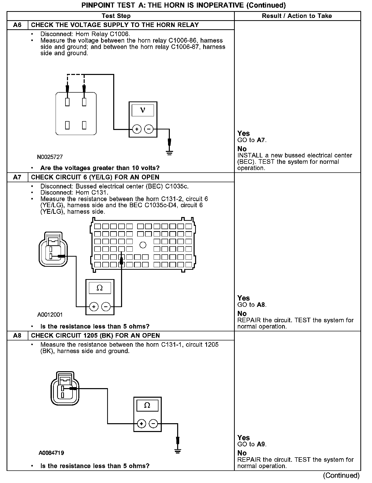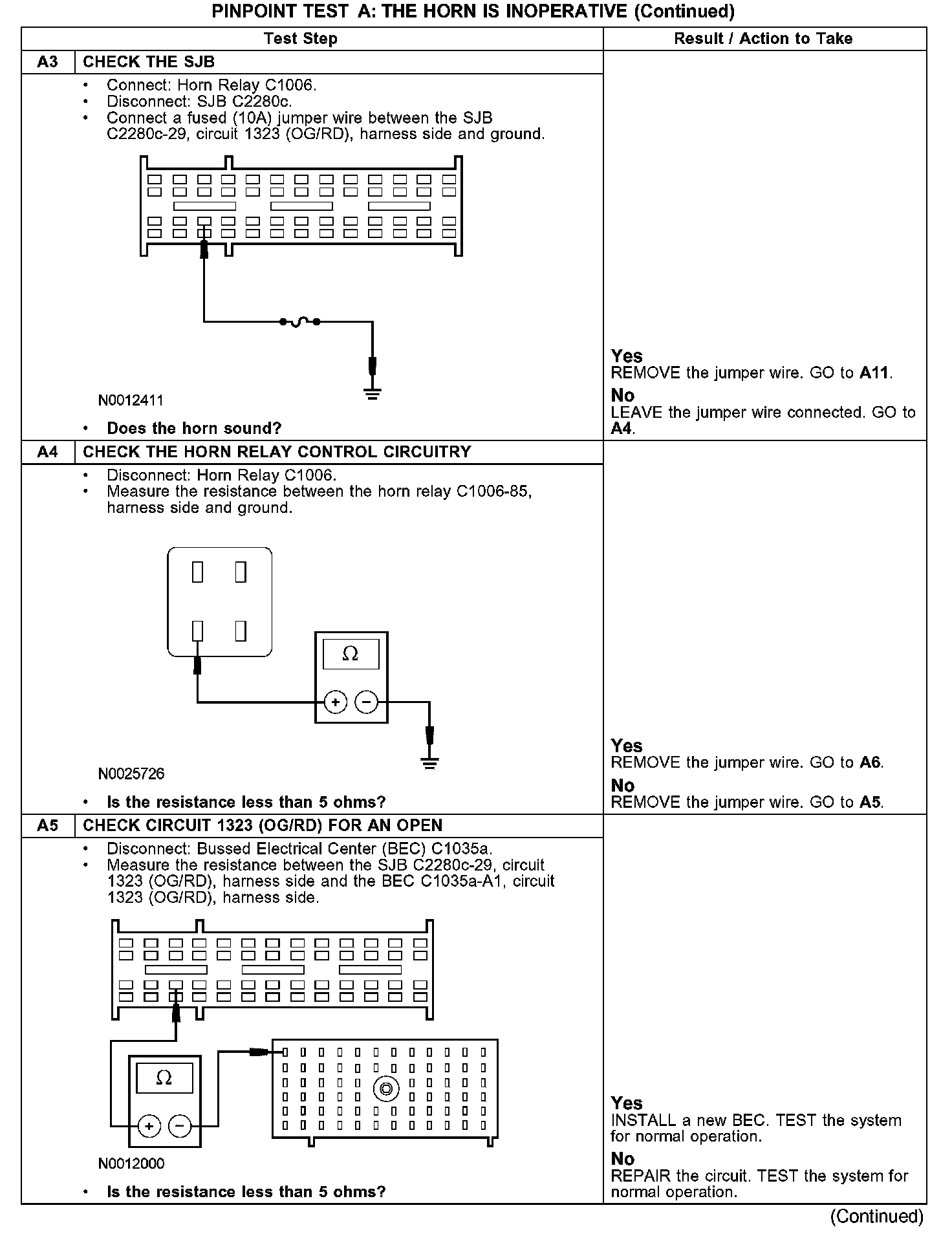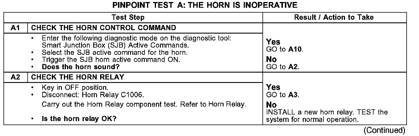 PINPOINT TEST A: THE HORN IS INOPERATIVEA1-A2: