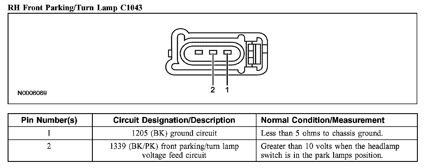 RH Front Parking/Turn Lamp C1043:
