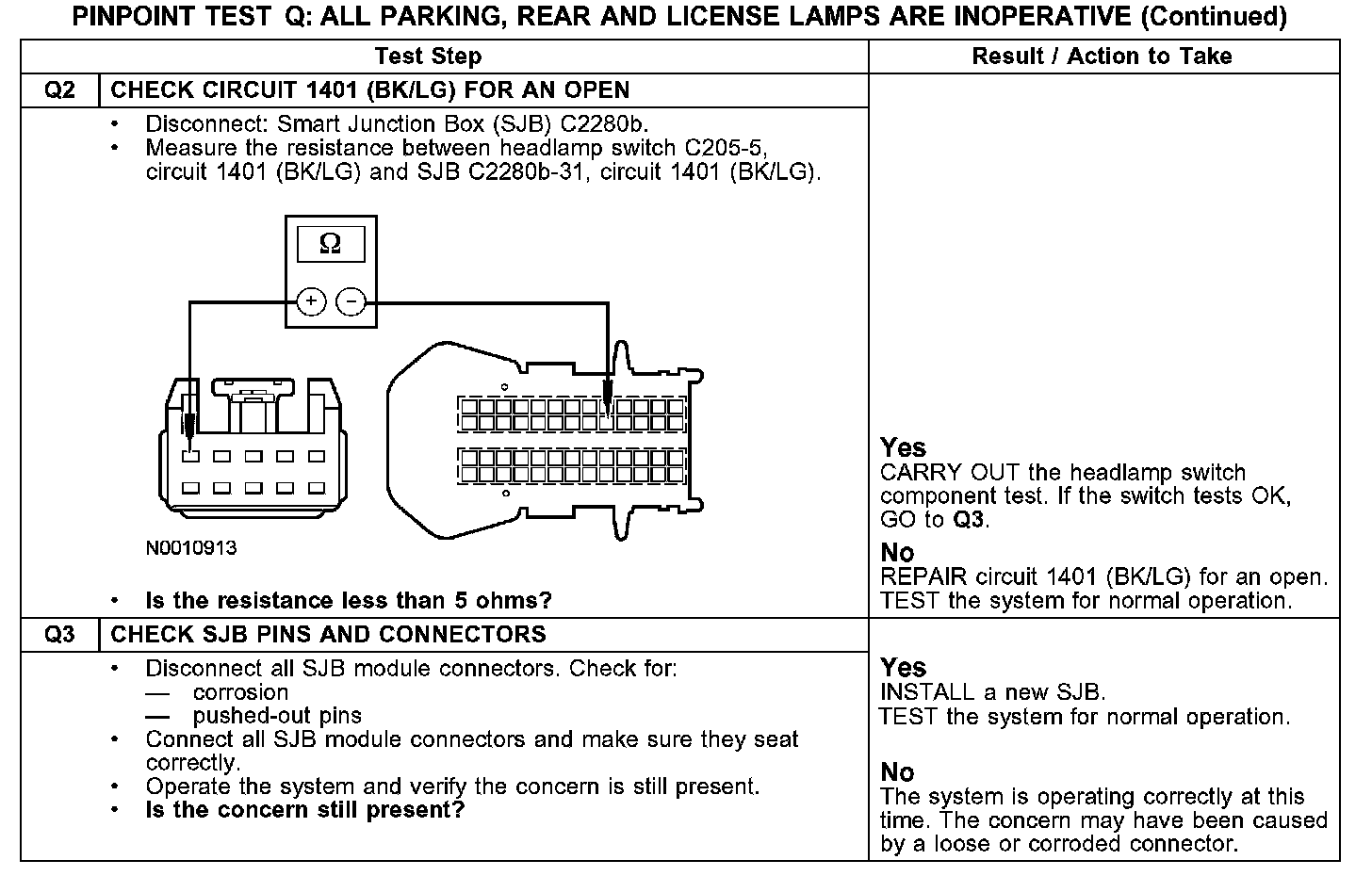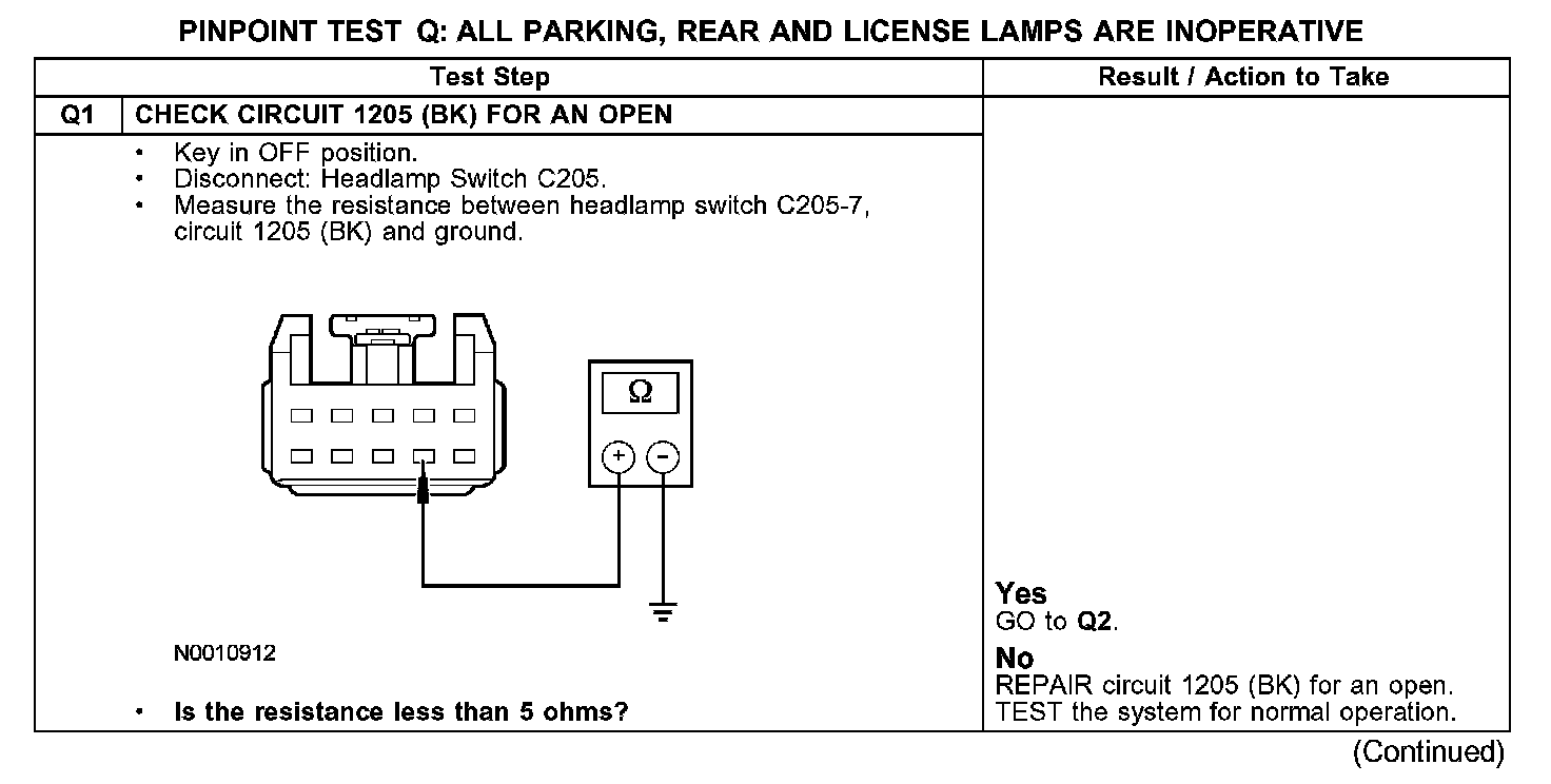 PINPOINT TEST Q: ALL PARKING, REAR AND LICENSE LAMPS ARE INOPERATIVEQ1: