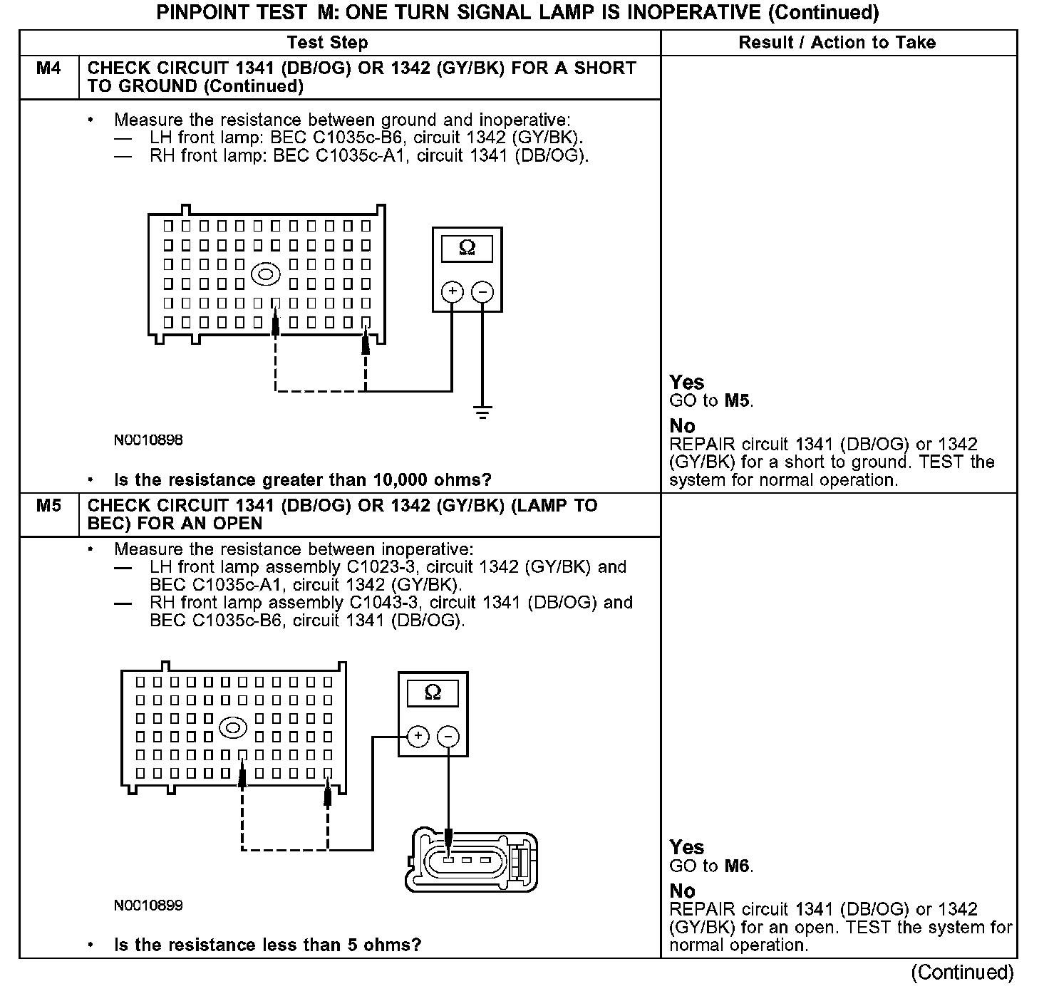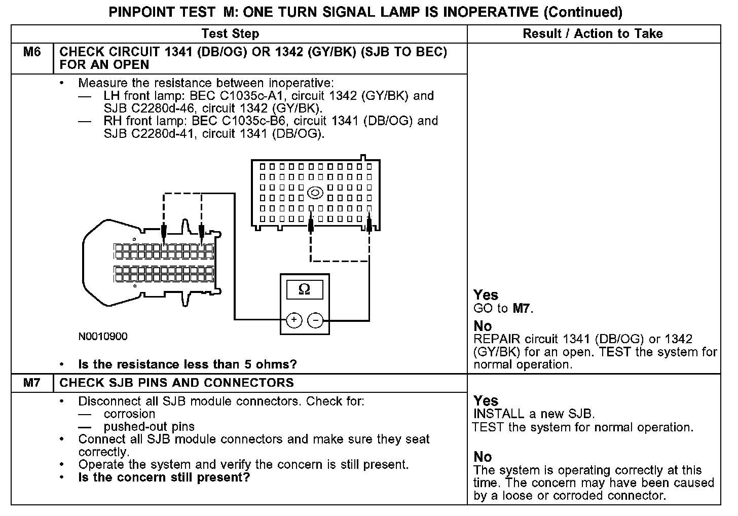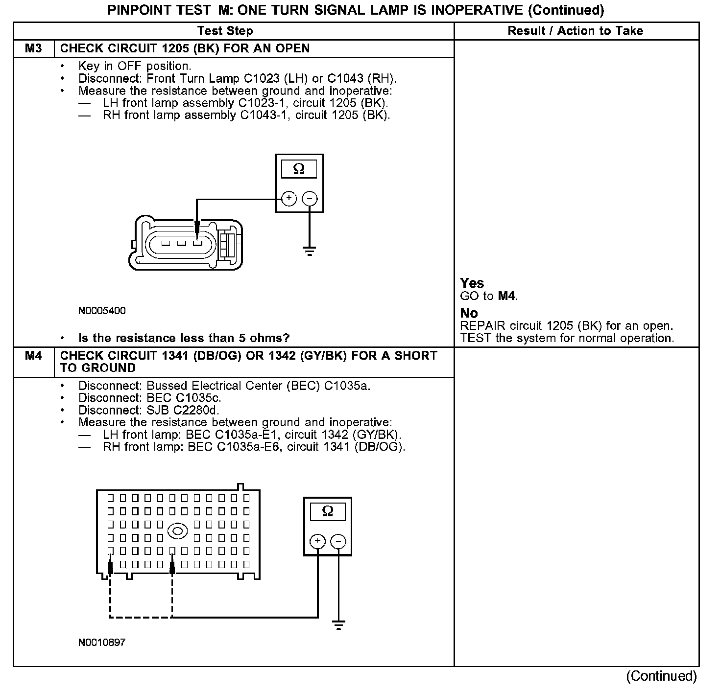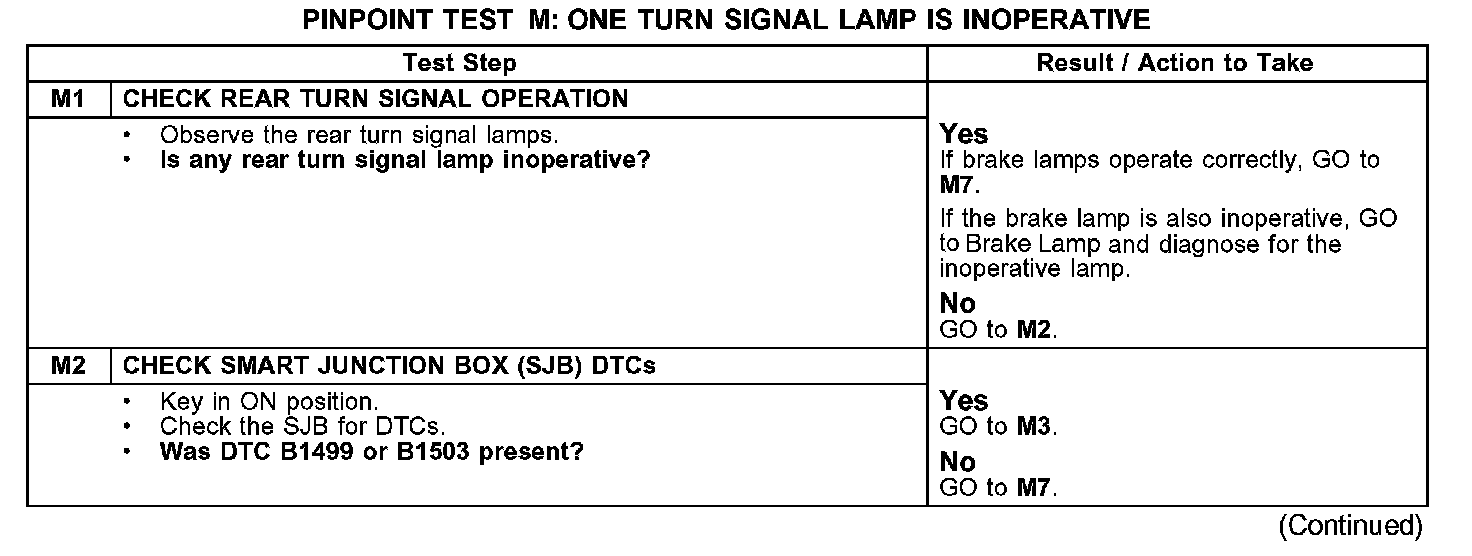PINPOINT TEST M: ONE TURN SIGNAL LAMP IS INOPERATIVEM1-M2: