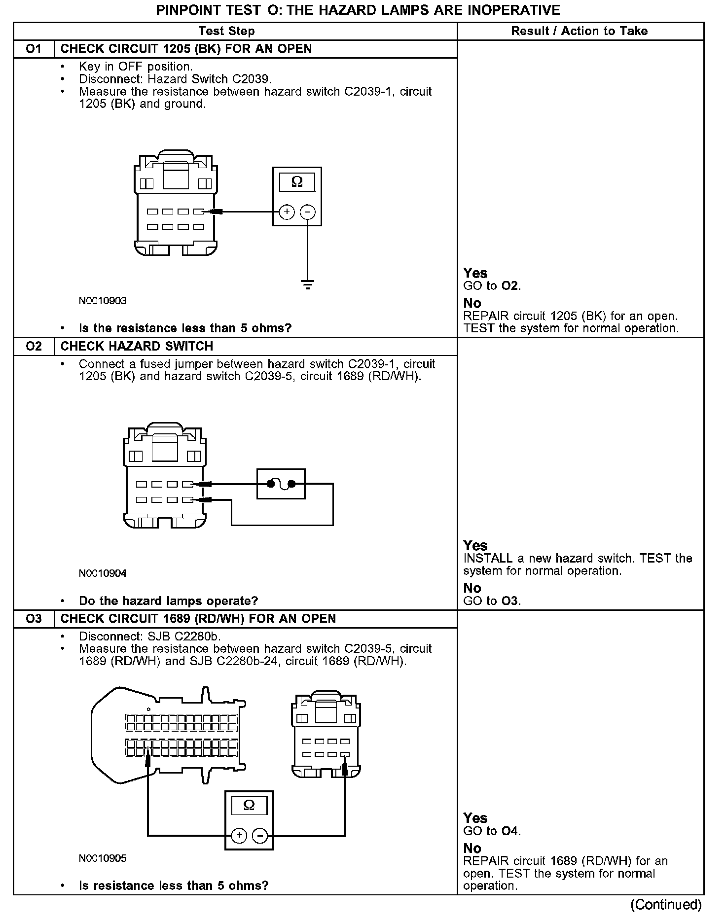 PINPOINT TEST O: THE HAZARD LAMPS ARE INOPERATIVEO1-O3: