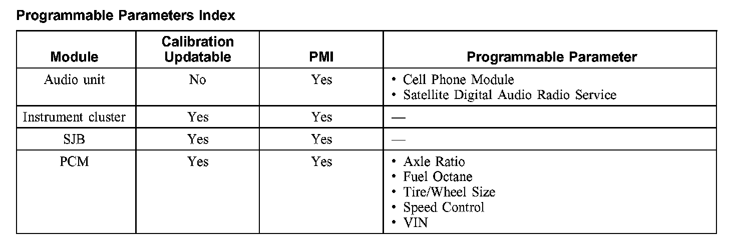 Programmable Parameters Index: