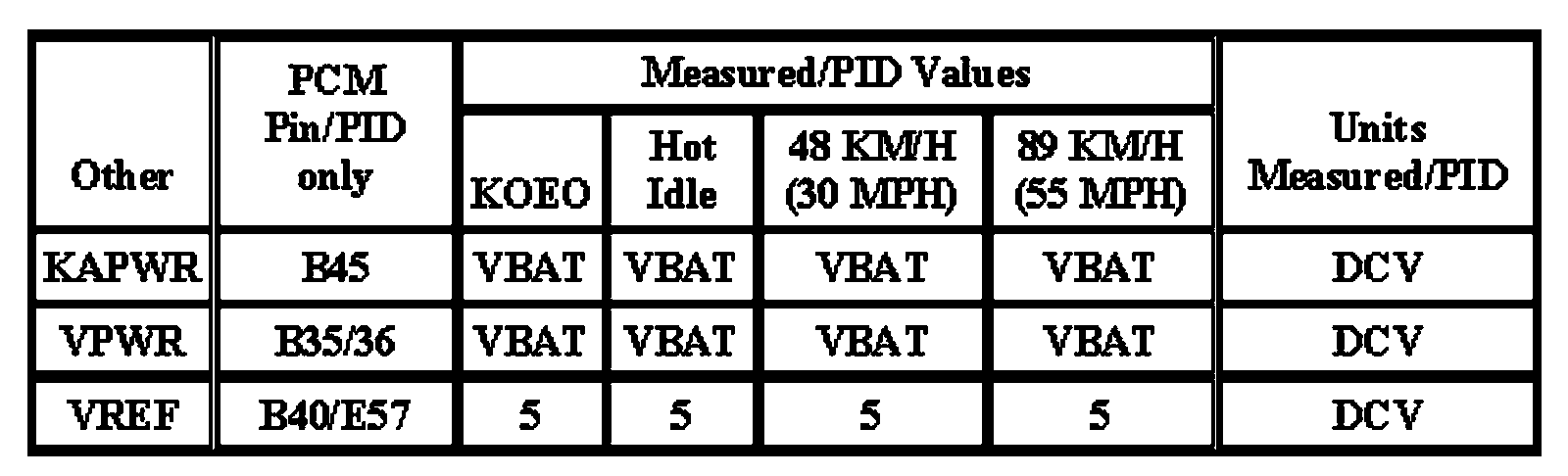 The Typical Diagnostic Reference Value Charts do not display fault PIDs. These are PIDs which indicate a hard fault with the circuit. They display a value of "YES" or "NO" and are PIDs ending with an "F".