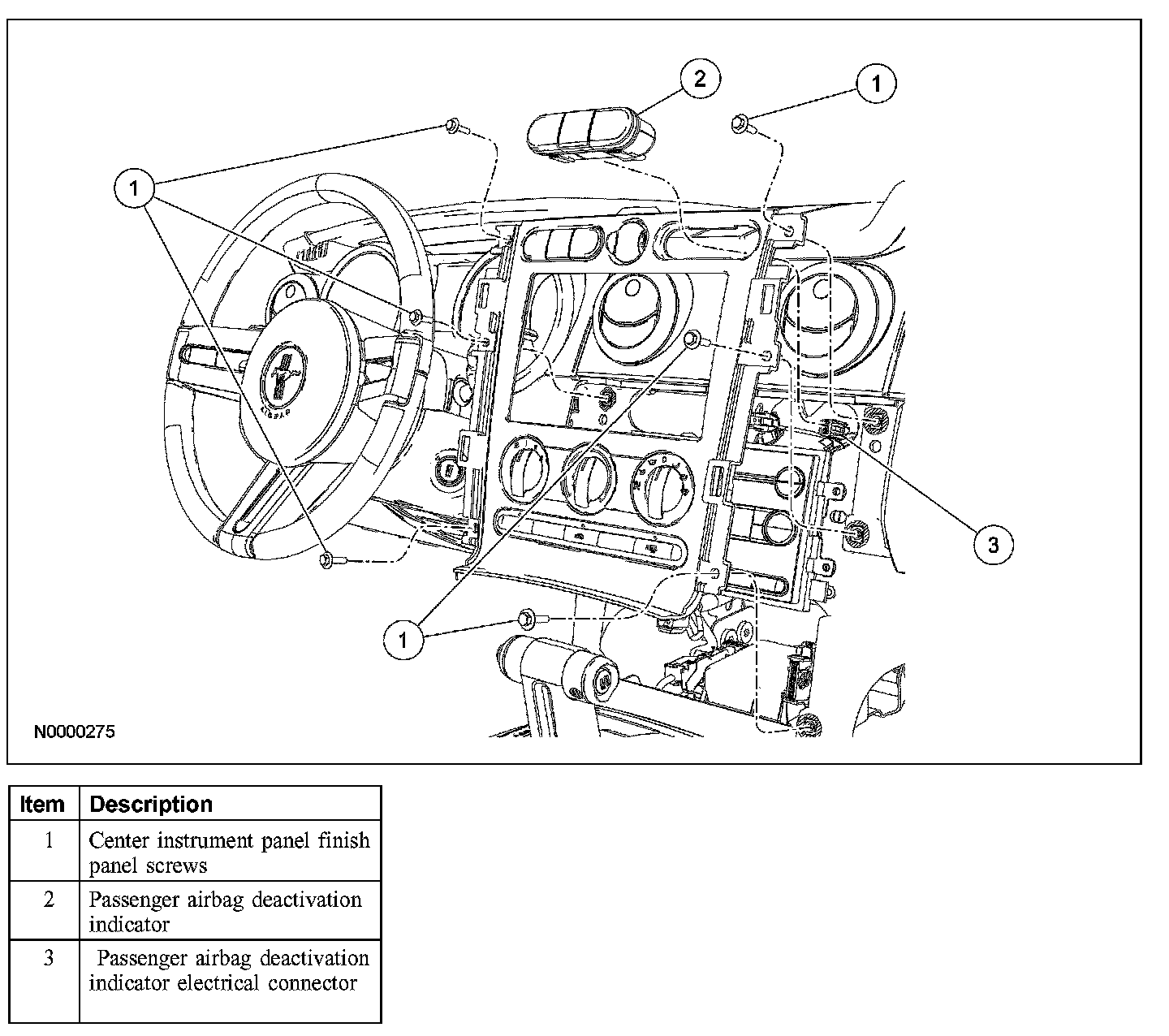 PASSENGER AIR BAG DEACTIVATION (PAD) INDICATORRemoval and Installation