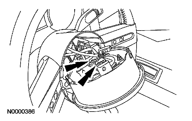6. CAUTION: The clockspring electrical connectors are unique and cannot be reversed when connected to the driver air bag module. Match the electrical connector key to the keyway in the driver air bag module. Do not force the electrical connectors into the driver air bag module.