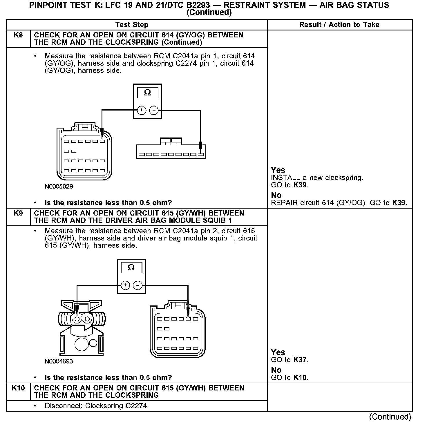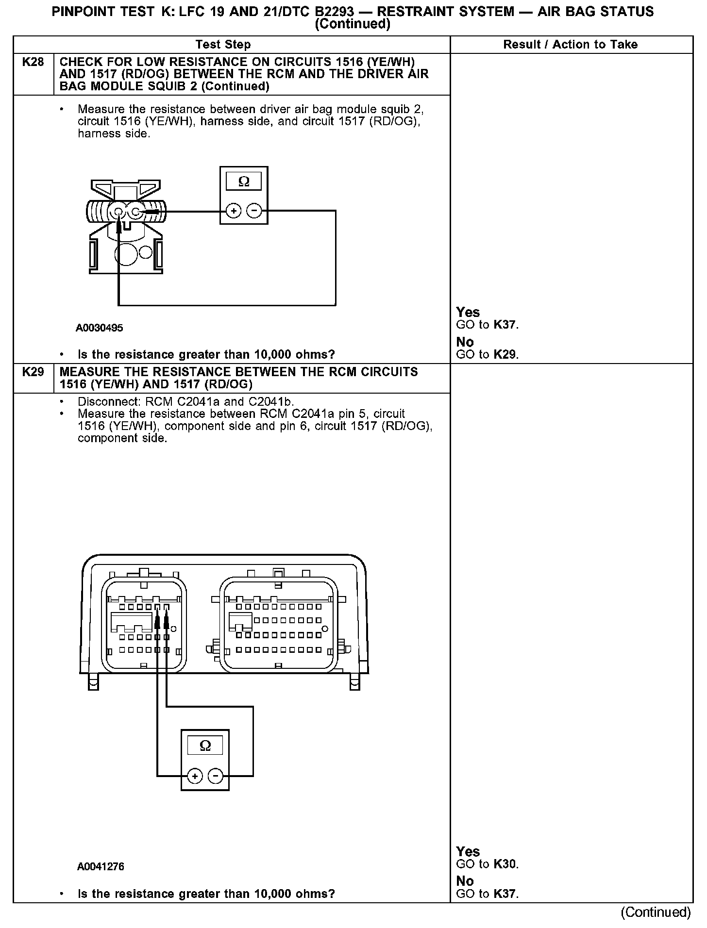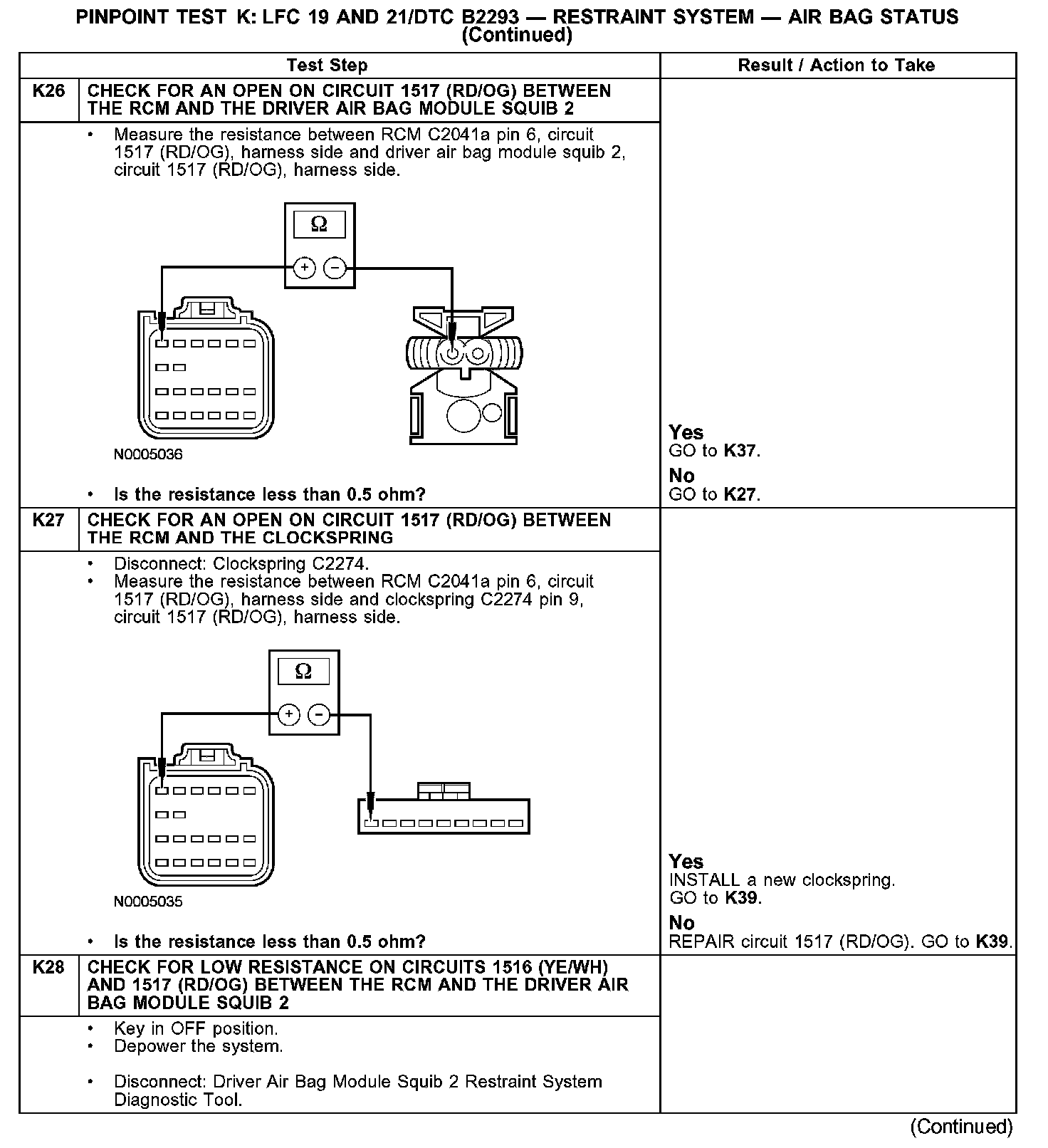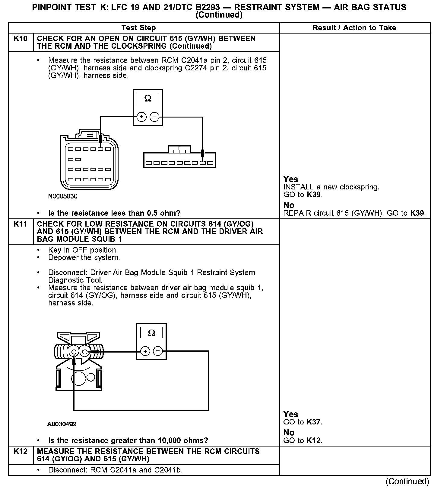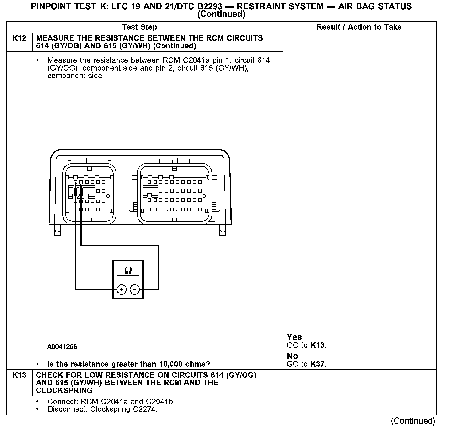 Test K: LFC 19 and 21/DTC B2293 - Restraint System - Air Bag Status