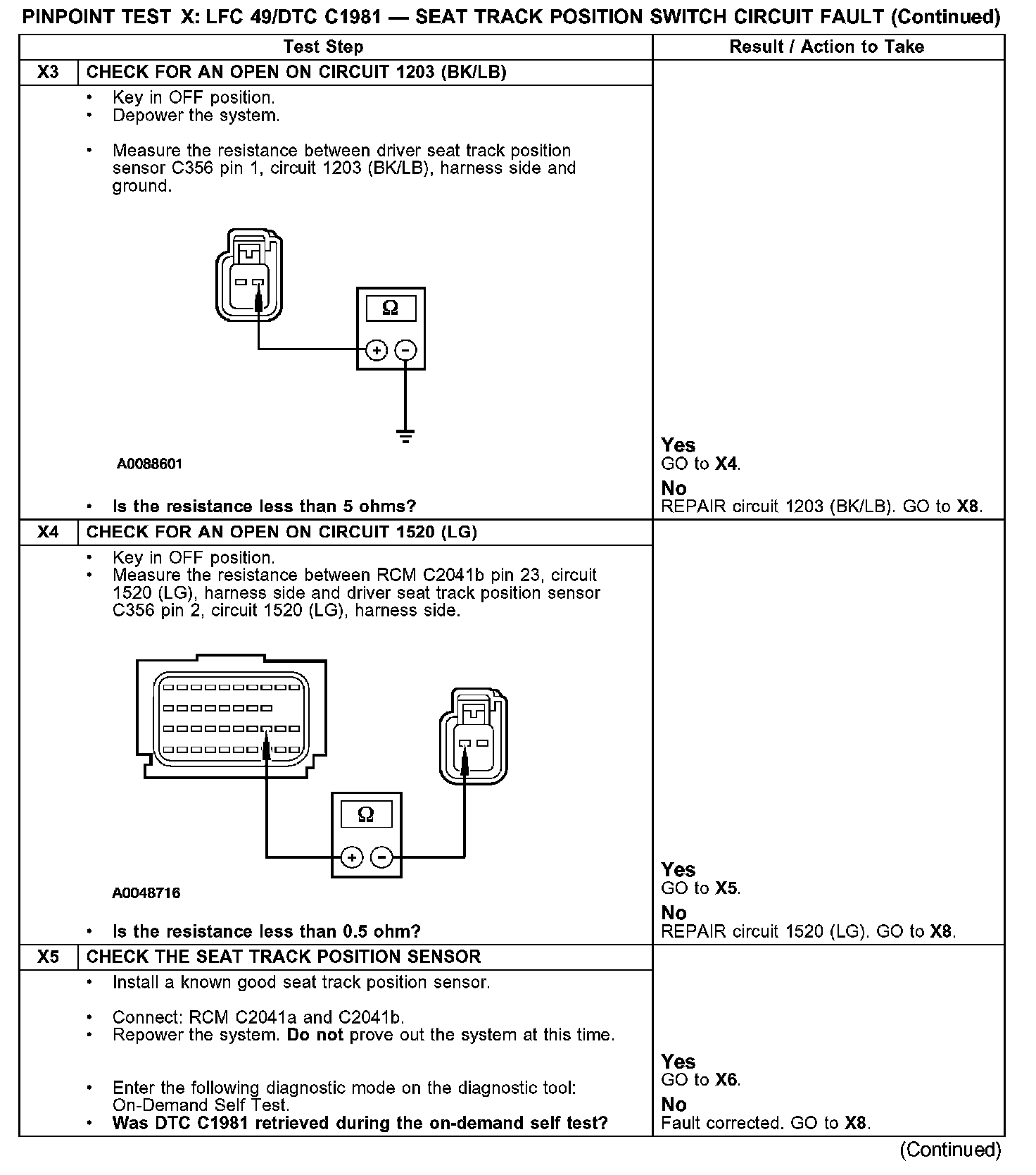 PINPOINT TEST X: LFC 49/DTC C1981 - SEAT TRACK POSITION SWITCH CIRCUIT FAULTX1-X2: