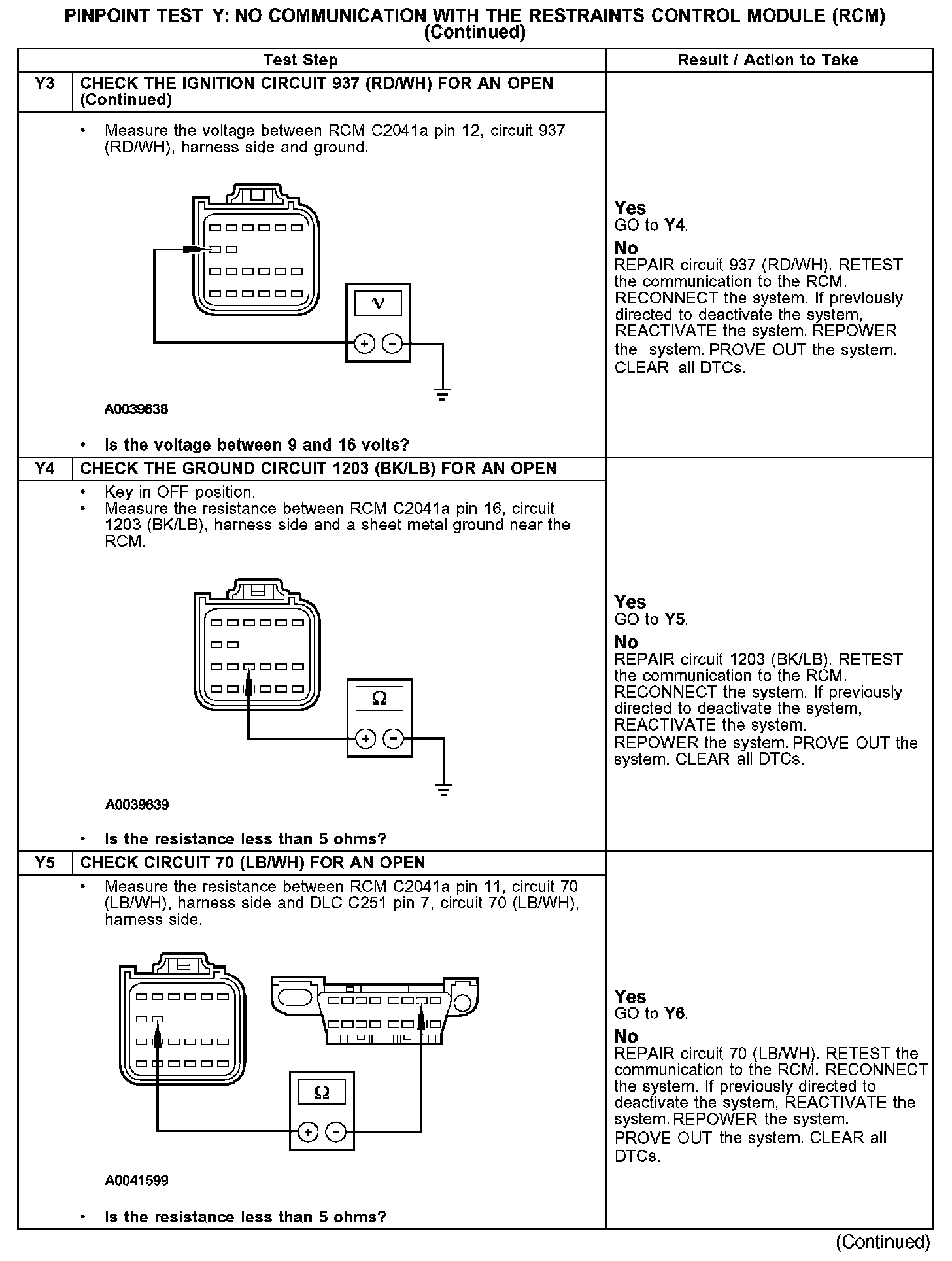 PINPOINT TEST Y: NO COMMUNICATION WITH THE RESTRAINTS CONTROL MODULE (RCM)Y1-Y3: