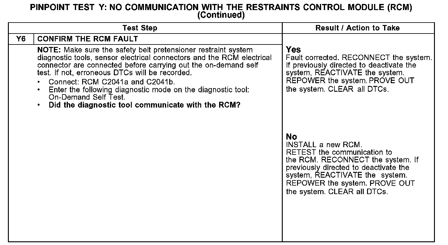 Test Y: No Communication With The Restraints Control Module (RCM)